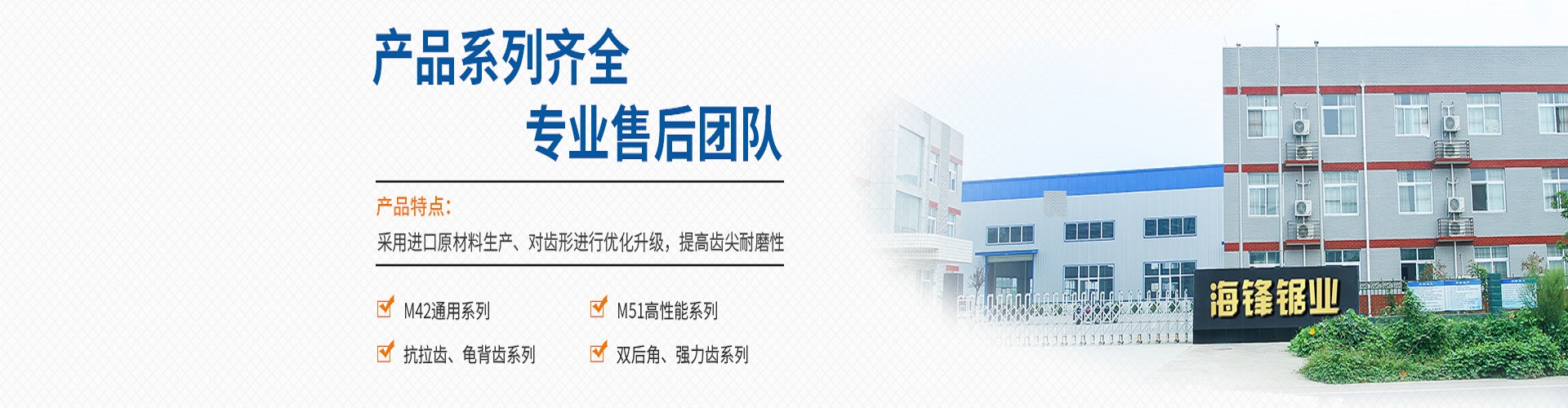 海锋锯业厂家提供双金属带锯条和硬质合金带锯条锯切销售解决方案,公司从业多年以来已被全国各地金属加工企业采购,并成为其长期使用双金属和硬质合金带锯条供应厂家,复购和品牌认可率高。海锋锯业生产供应的带锯条涵盖10类产品系列,9大规格,47种不同齿形,宽度包含:19mm、27mm、34mm、41mm、54mm、67mm、80mm。应用范围包含高温合金、青铜、铜合金、钛、钛合金、铝、铝合金、不锈钢、双向不锈钢、镍基合金、紫铜等高难度锯切金属材料。精密焊接、超细晶硬质合金齿材技术稳定,锋利磨齿、不蹦齿、硬度寿命长。海锋锯业可按客户(龙门、卧式、立式)锯床需要,批发定制专属双金属和硬质合金带锯条长度。售前售后全天24小时为全国客户服务。